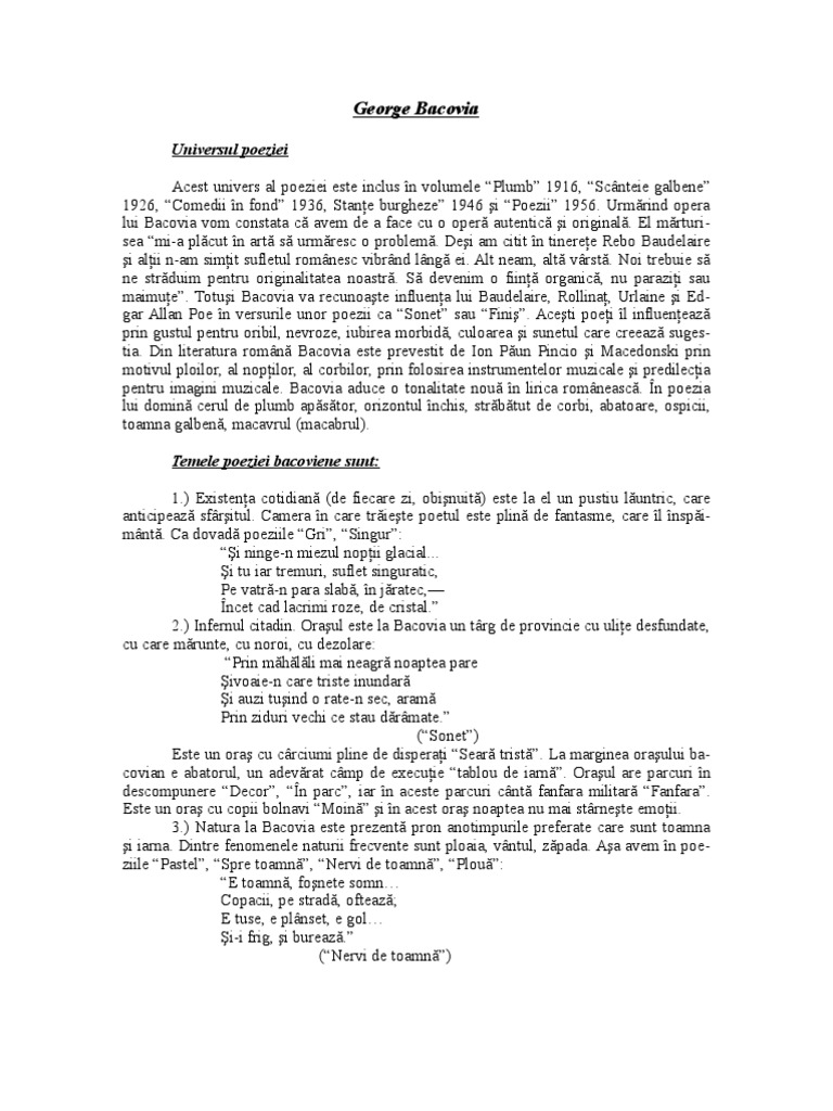 Doc Plumb De George Bacovia Simbolism Comentariu Bac Anca Nicolae Academia Edu