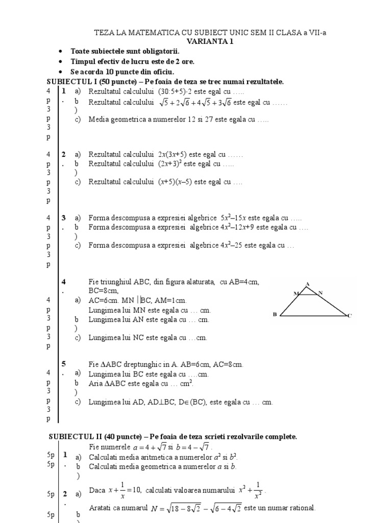 Subiecte Bac Iulie 2019 Matematica Facebook