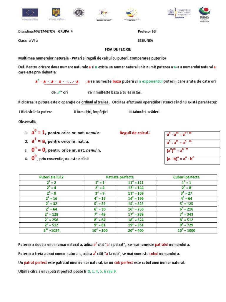 Vi Puteri Fisa De Teorie Si Fisa De Lucru