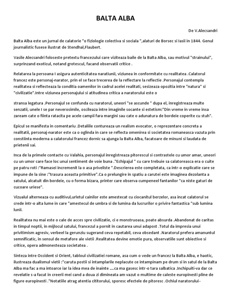 Referat Balta Alba De Vasile Alecsandri 365644 Graduo