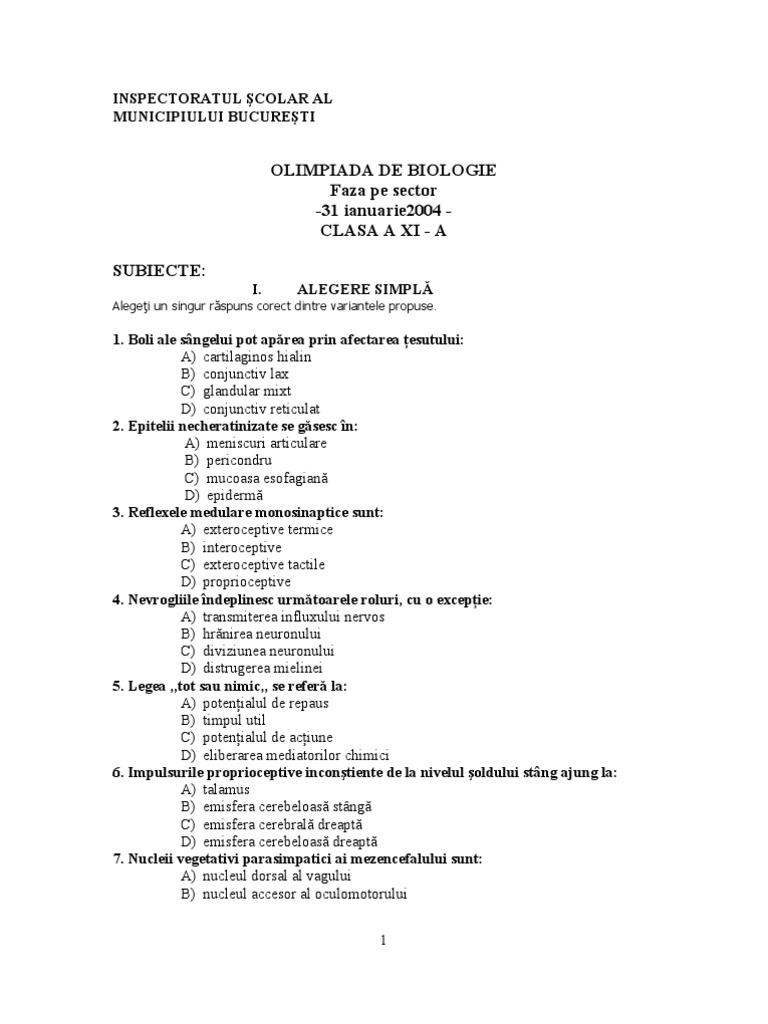Doc Olimpiada De Biologie Faza Locala 17 Ianuarie 2009 Clasa A Ix A Adelina Mariia Academia Edu