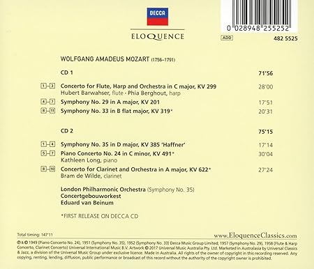 Van Beinum Eduard Mozart Symphonies Concertos Amazon Com Music