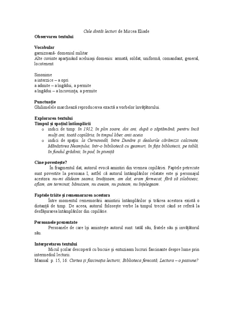 Cele Dintai Lecturi De Mircea Eliade A 5 A