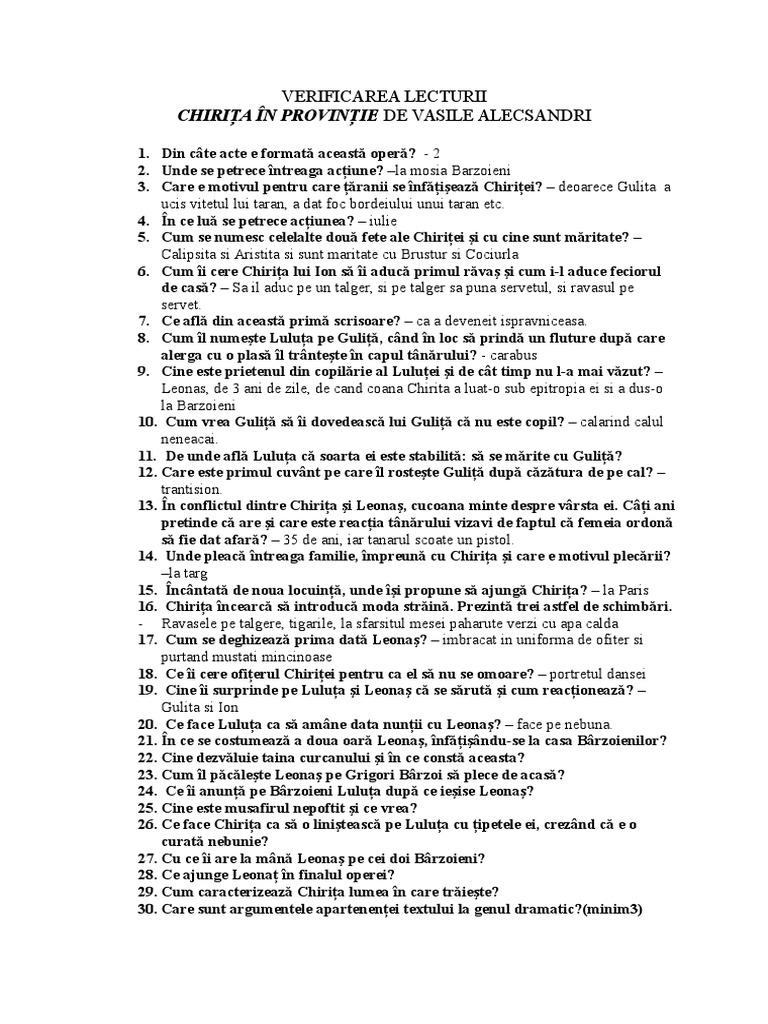 Doc Chestionar De Verificare A Lecturilor Cls A Xi A Andreea Tiliban Academia Edu
