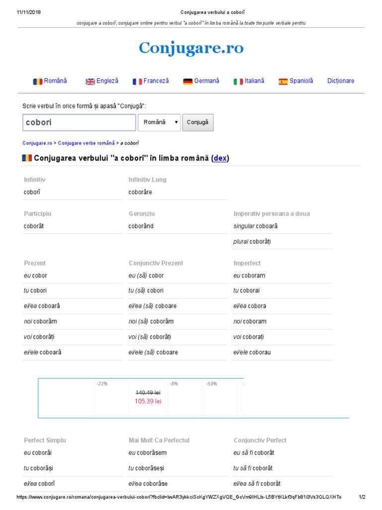 Conjugarea Verbului A Cobori