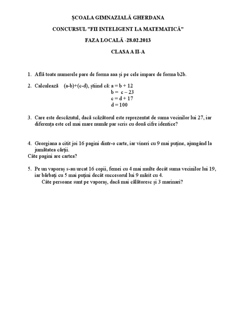 Model De Subiect Fii Inteligent Clasa A I Concursurile Nationale Ale Asociației Inteligent Facebook