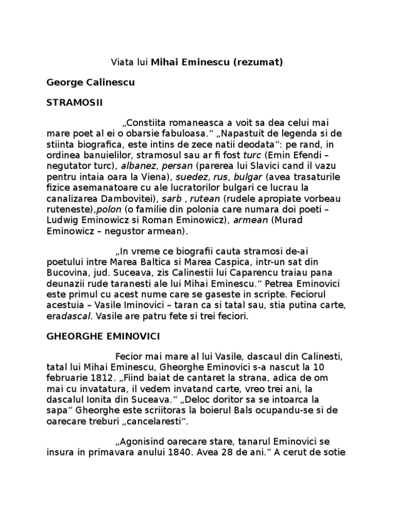 Viata Lui M Eminescu